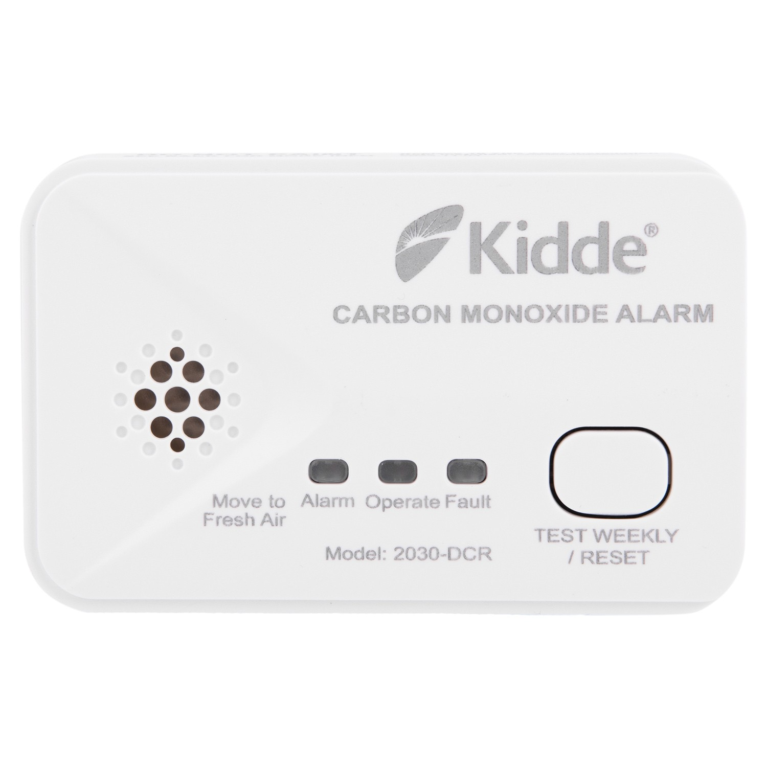 The Kidde 2030-DCR is a battery operated carbon monoxide alarm with a 10 year sensor life. Suitable for wall mounting or free standing installation, this CO alarm can be installed anywhere in your home. Three colour-coded LED indicators clearly display the current status of the Kidde 2030-DCR carbon monoxide alarm; green for normal operation, amber for a fault, and red for alarm.