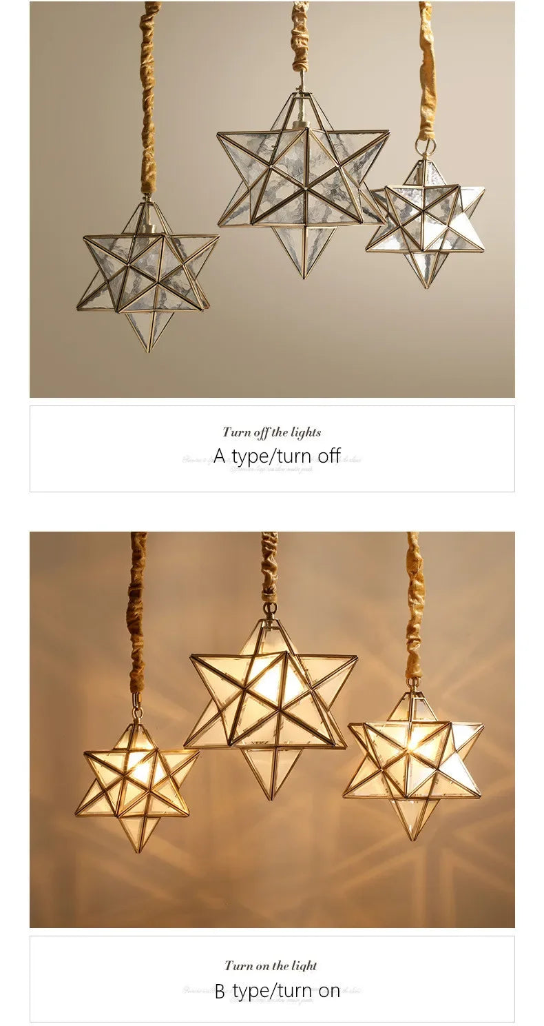 Simple Bedroom Creative Personality Glass/copper Star Chandelier Lamps