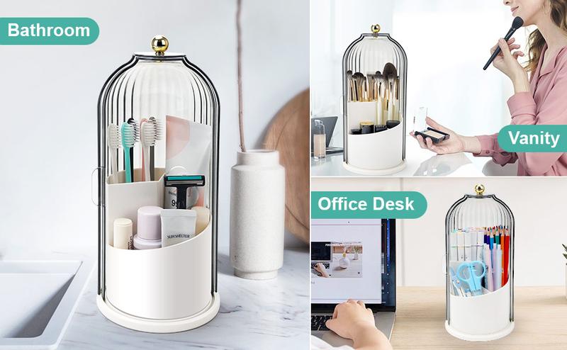 360 Degrees Rotating Base: Make up brush holder organizer spins, so you can access all the items easily, the cover can stay on when brushes are removed or added.