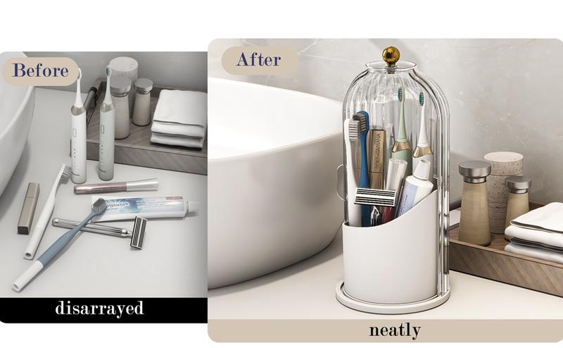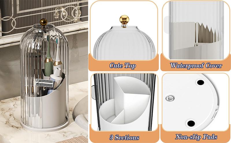 360° Rotating Makeup Brush Holder with Transparent Lid - Stylish Organizer for Vanity, Bathroom, and Desktop