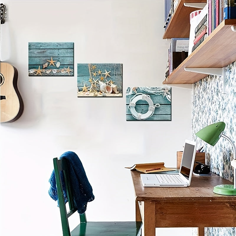 3pcs Starfish shell turquoise board canvas printing, beach nature picture canvas artwork