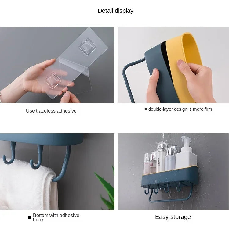 Wall Mounted Bathroom Shelves Floating Shelf Shower Hanging Basket Shampoo Holder WC Accessories Kitchen Seasoning Storage Rack