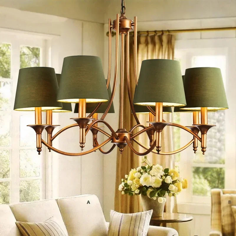 - Features: iron lamp body, fabric shades