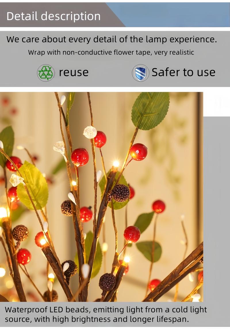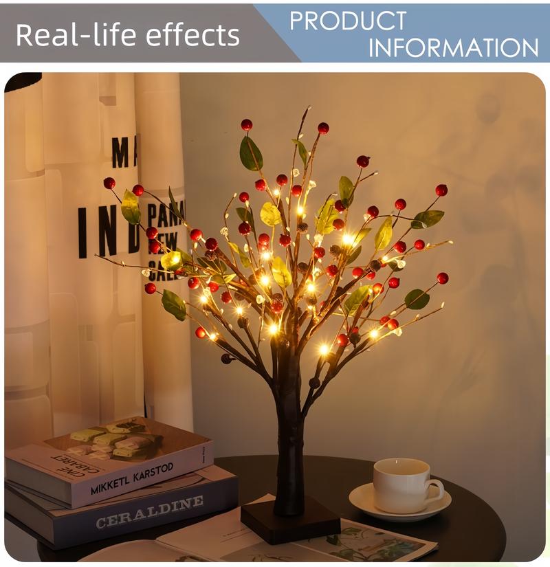 - Golden Fruit Tree LED Lights: Equipped with LED lights, this tree offers a warm glow that complements the red fruit design. It's suitable for various occasions like Halloween, Christmas, and party scenes. Create a magical ambiance with these lights.