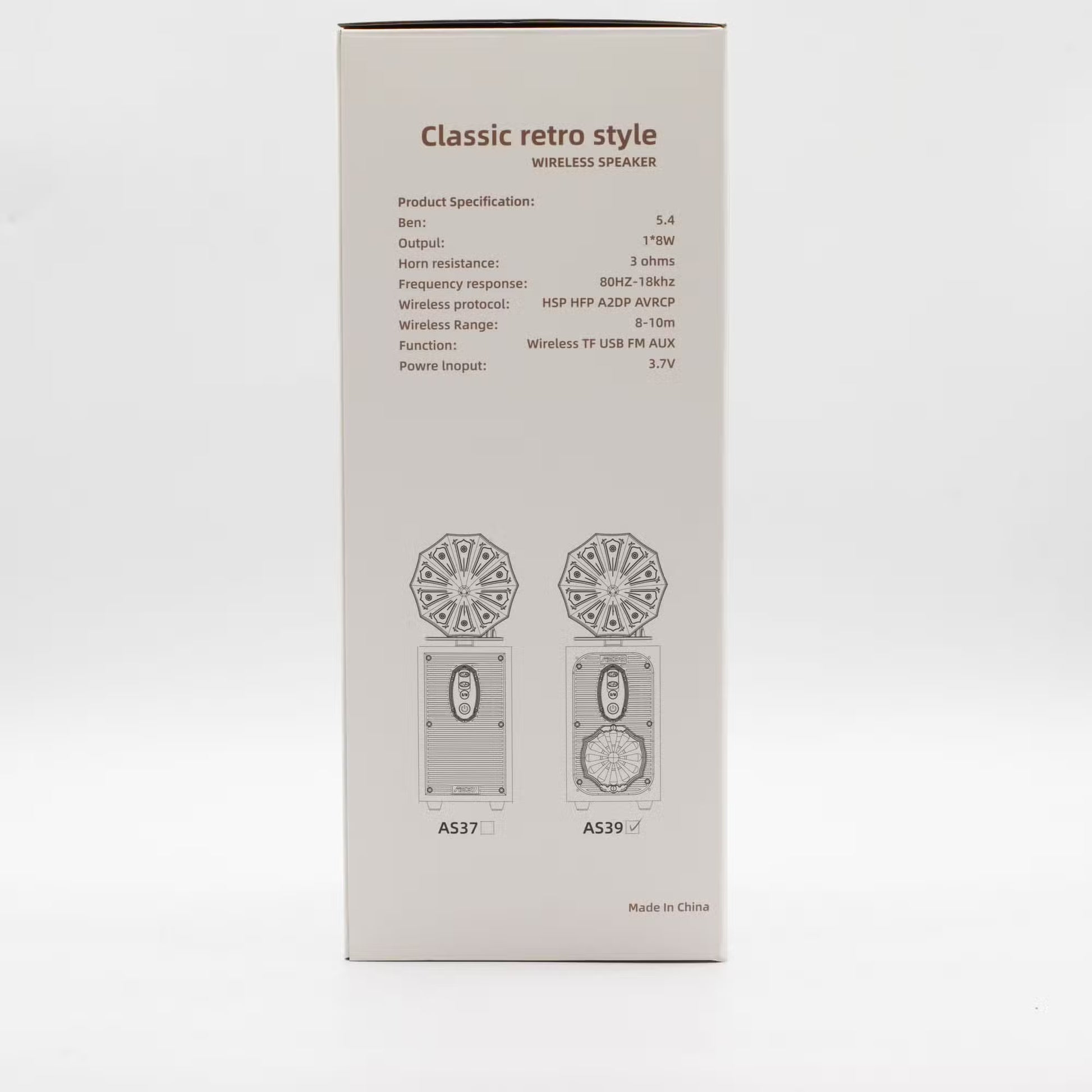 The built-in horn enhances projection, making this model noticeably louder than smaller retro speakers. Wireless playback is smooth and stable within an 8–10m range, and the speaker also supports FM radio, USB, TF card, and AUX input for flexible listening.