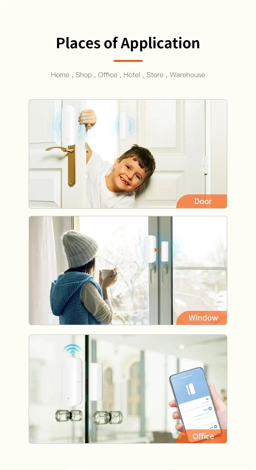 Push instant notification to your phone immediately when the door or window is opened or closed. Keeping you informed all the time.