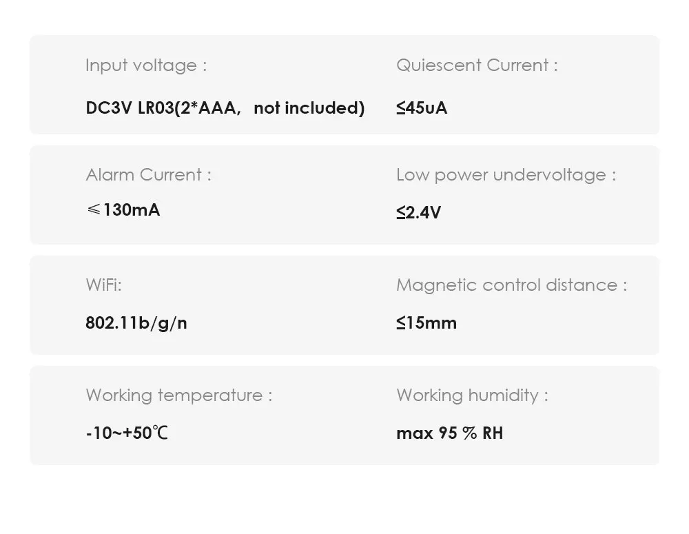 • WiFi Connectivity :Connects to your home WiFi network, allowing you to monitor your doors and windows from anywhere using your smartphone.