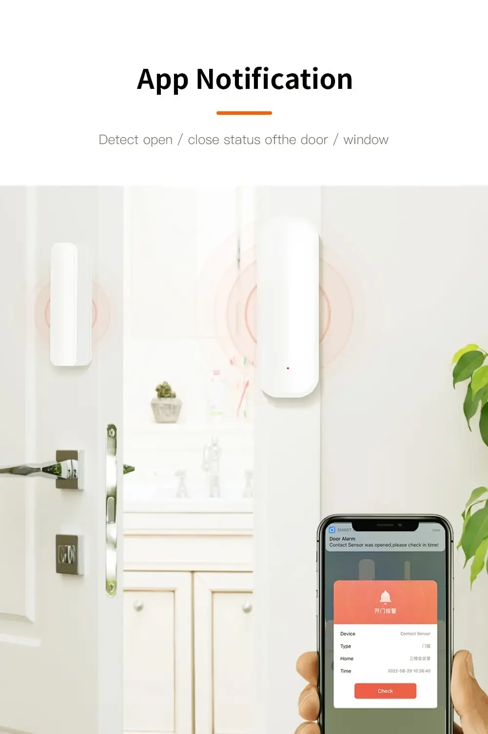 【Easy to install】No complicated installation tools are required. The sensor can be installed with double-sided adhesive tape or screws(included) in just a few steps, and download an app "Tuya Smart" or "Smart Life" from Google Play or App Store to add the device to detect the status of your door/window.