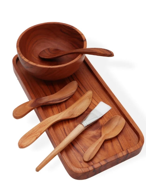 Spa Clay / Wax Application Set for clay or wax in natural teak wood. It has been made by hand in Indonesia, with teak wood, to guarantee excellent longevity, in addition to a shiny and beautiful natural wood appearance.