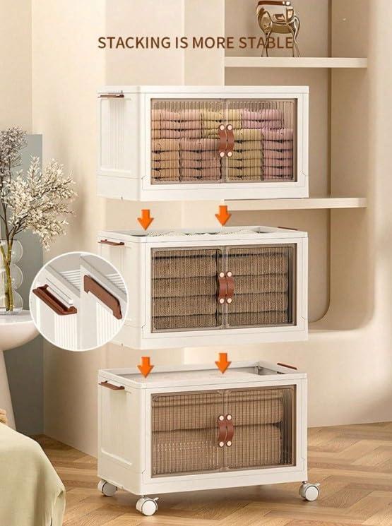 Versatile Foldable Stackable Storage Box with Front Opening Lid, Wheels & Organiser Cover - Perfect for Home & Office!