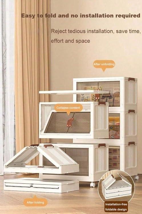 - 【Versatile & Wide Application】 The folding storage box is lager capacity, odourless, semi-transparent, thickness and strong load. The stackable storage cabinet can be easily folded to save you more space. It can be used as living room storage, bedroom storage, kitchen storage, food storage box, snack storage, book storage bins and so on.